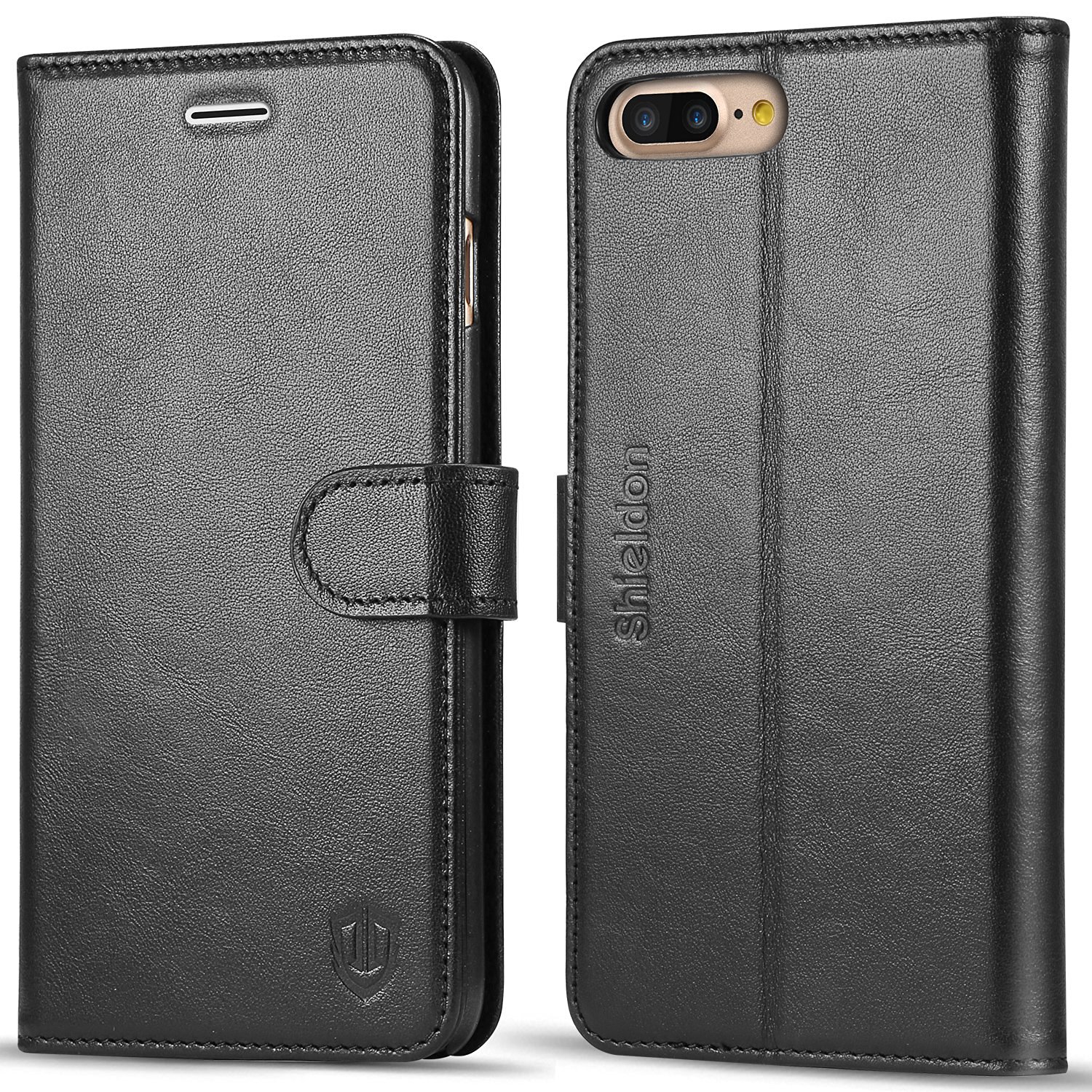 iPhone 7 Plus Leather Case, iPhone 7 Plus Wallet Case, SHIELDON Genuine Leather Wallet Case with Magnetic Clasp for Apple iPhone 7 Plus – Single Snap [Black]