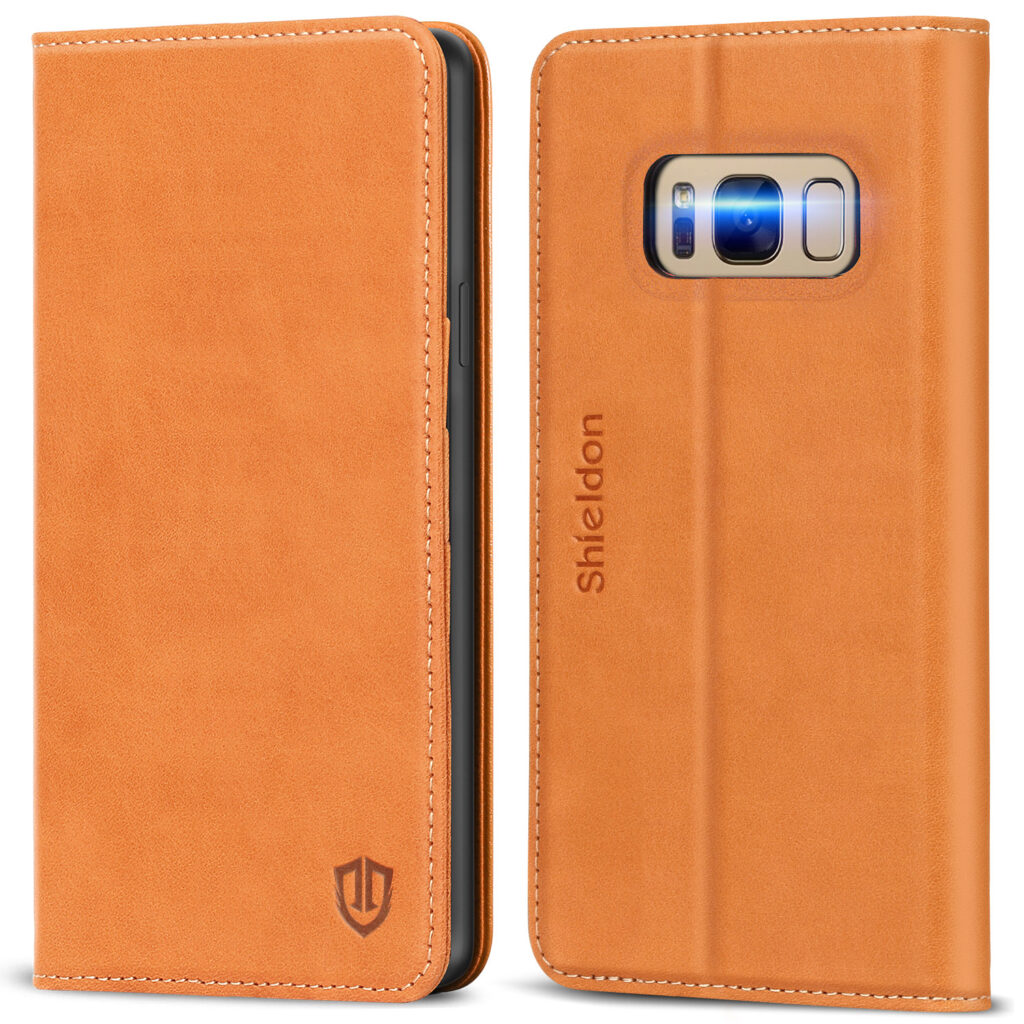 SHIELDON Galaxy S8 Plus Case, Galaxy S8 Plus Genuine Leather Case, Protective Wallet Case with TPU Shell,Card Holder, Kickstand, Flip Case Folio Cover Compatible with Galaxy S8 Plus, Brown